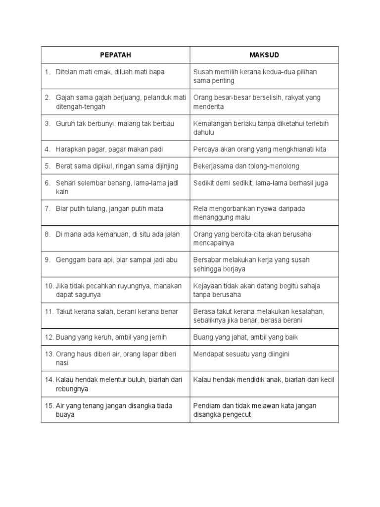 (nilai dilema) makna tersurat = maksud sekiranya ditelan mati emak, namun untuk diluah dikhuatiri mati bapak makna tersirat = berada dalam dilema untuk membuat pilihan kerana. Diluah mati mak ditelan mati bapak. Arti dari peribahasa bagai memegang buah kepantangan beruk; Hubungan semantik dan pragmatik dengan peribahasa serta nilai peribahasa 1. Posted by tongah at 11:19 am.