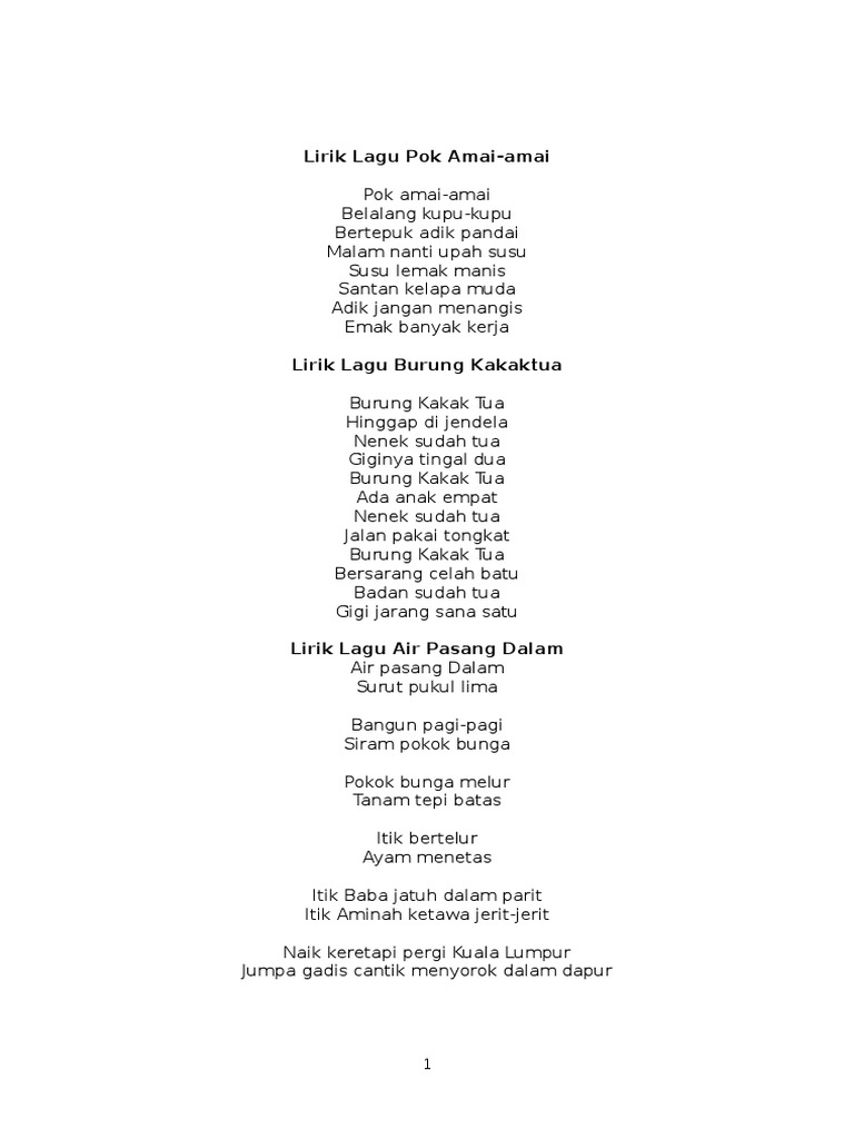 Lirik Lagu Poco Poco Jopie Latul Pok Amai Amai Pok Amai Amai Belalang Kupu Kupu K W Lagu Kanak Pdf Document from demo.vdocuments.mx Tepuk amai2 lagu mp3 download from lagump3downloads.com. Amai in bed awake ashtrejinkinsrmx. Lagu barat home lagu indonesia. Cara melukis, menggambar dan mewarna watak didi dan bingo dalam lagu terbaru tepuk amai amai dengan menggunakan. ★ download mp3 lagu tepuk amai amai gratis, ada 20 daftar lagu sia yang bisa anda download. Free mp3 download ▶ tepuk amai2 download lagu tepuk amai2 dan streaming kumpulan lagu tepuk amai2 mp3 terbaru gratis dan mudah dinikmati and full album. Download lagu mp3 & video: Lagu kanak kanak tepuk amai amai didi amp friends.